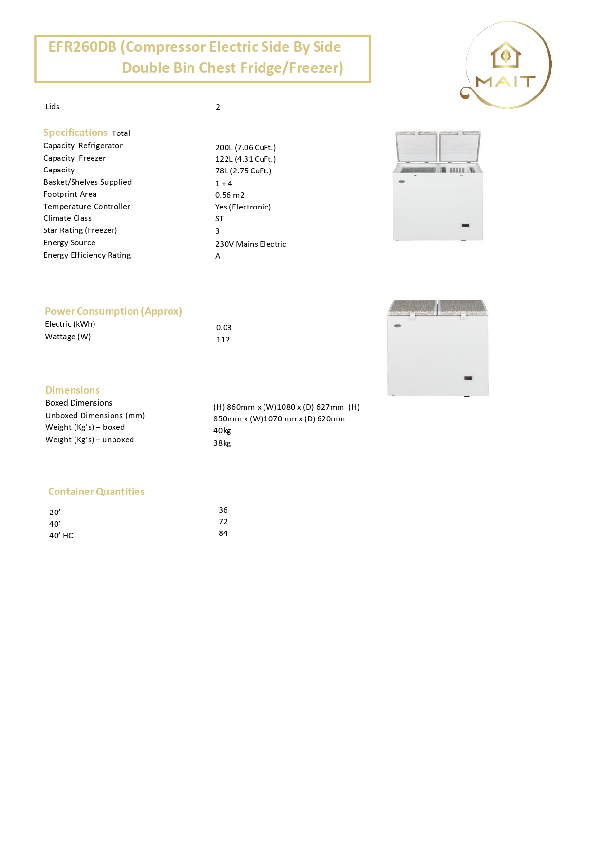 EFR260DB (Compressor Electric Side By Side Double Bin Chest Fridge/Freezer)